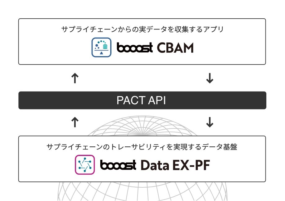 「booost CBAM」は、既存のデータ連携基盤「booost Data EX-PF」上に構築された、CBAM対応に特化したアプリケーションです。