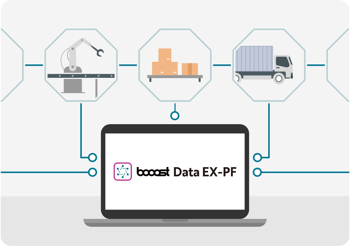 「booost Data EX-PF」を介して通信方式やデータ形式を統一し、一定水準のセキュリティとデータ粒度を確保