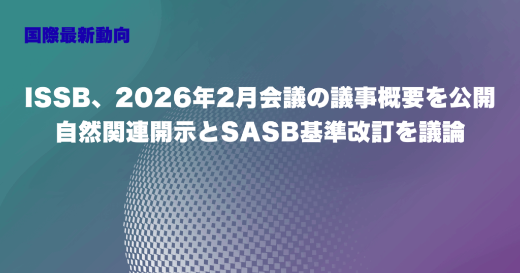 ISSB、2026年2月会議の議事概要を公開 自然関連開示とSASB基準改訂を議論