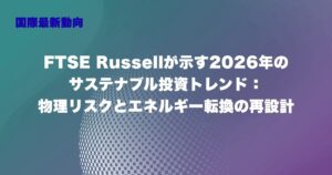 2026.01.28 最新動向海外 #エネルギー転換#サステナブル投資#気候変動#脱炭素 FTSE Russellが示す2026年のサステナブル投資トレンド:物理リスクとエネルギー転換の再設計 2026年に向けて、サステナブル投資(持続可能投資)の世界は新たな局面へと移行し...