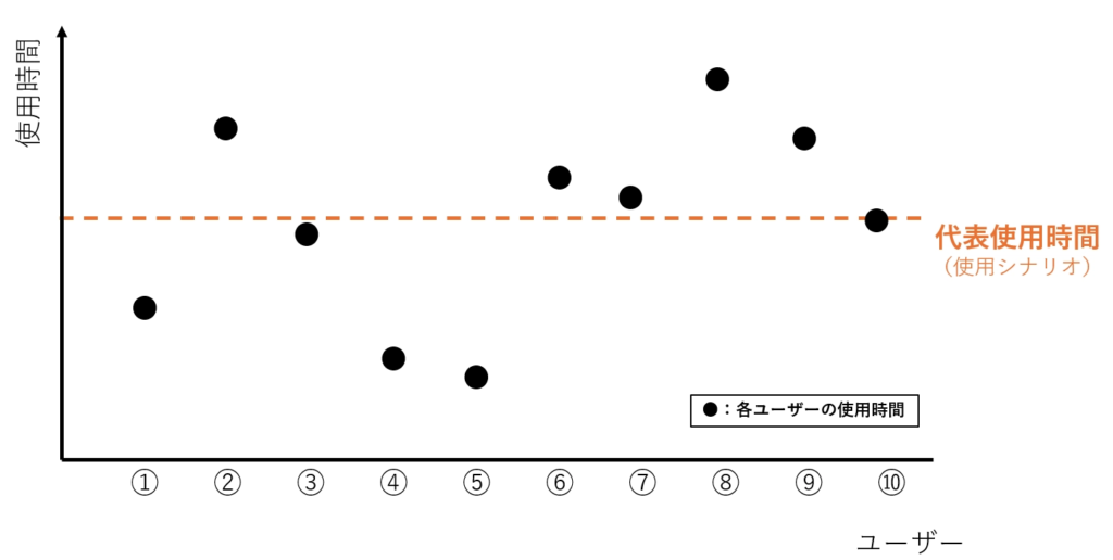 実際の使用状況にはばらつきがあるため、どの範囲を「代表値」として扱うのかも重要な判断となります。