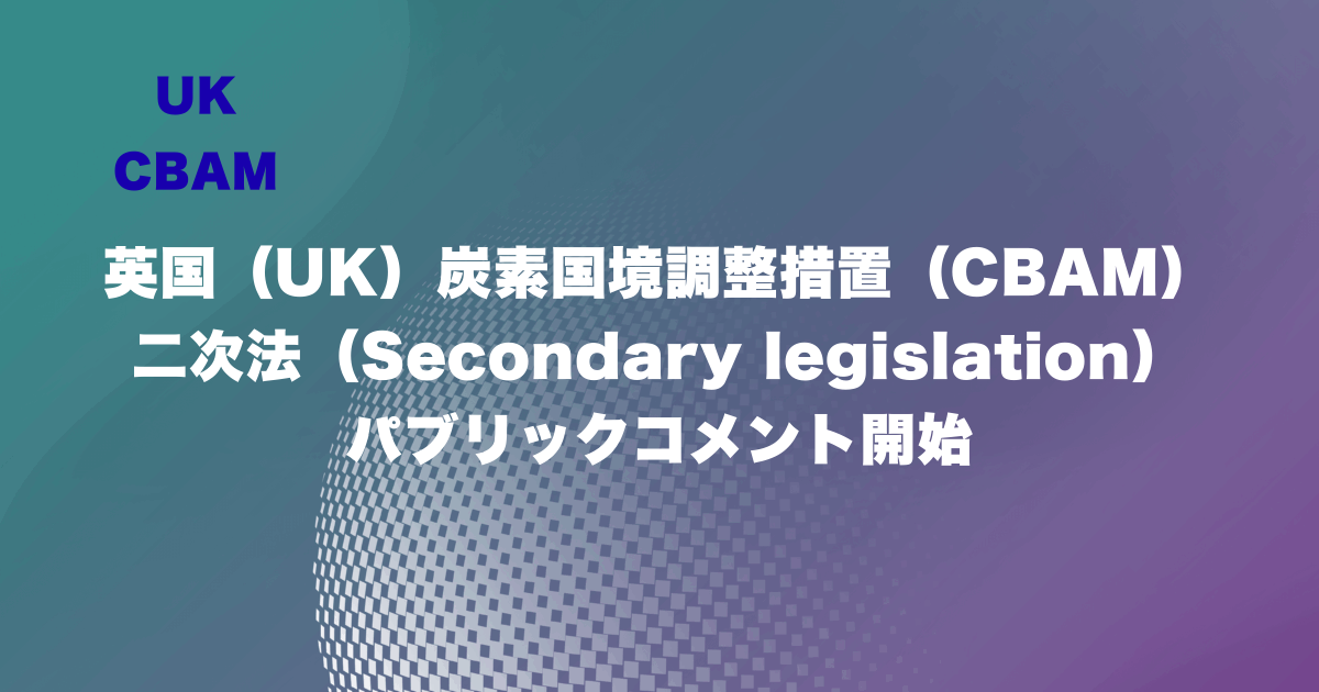 英国政府は、炭素国境調整措置(CBAM)に関する二次法令案を公表し、パブリックコメント(Technical Consultation)を開始しました。