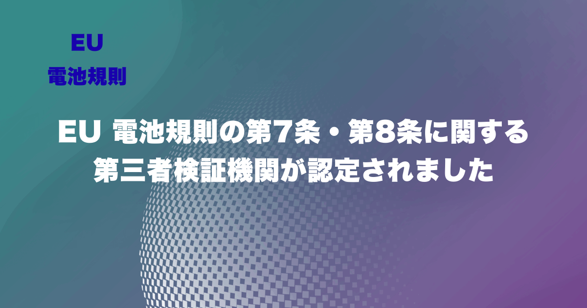 EU 電池規則の第7条(カーボンフットプリント)、第8条(リサイクル含有率)に関する第三者検証機関が認定されました