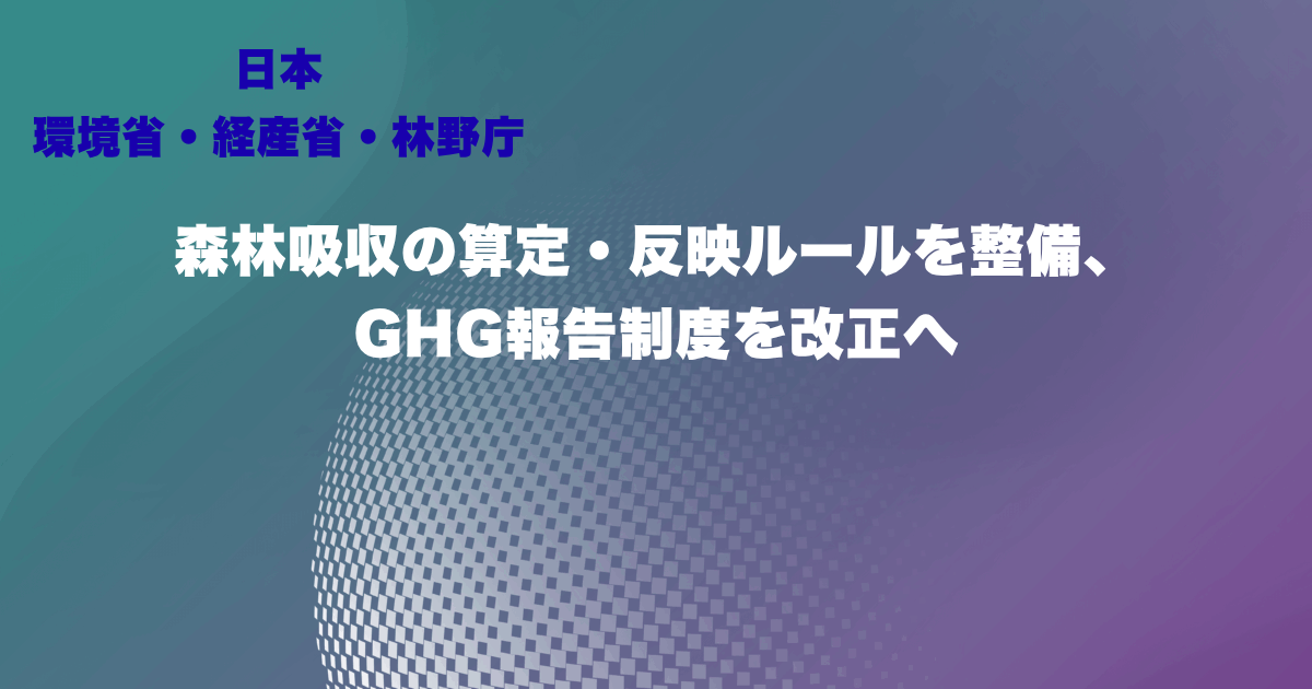 環境省などは、温室効果ガス排出量算定・報告制度において、森林や木材による炭素蓄積変化量の算定方法を定める告示を公布するとともに、調整後排出量への反映方法を改正した。これにより、企業は森林吸収を任意で排出量算定に組み込むことが可能となる。